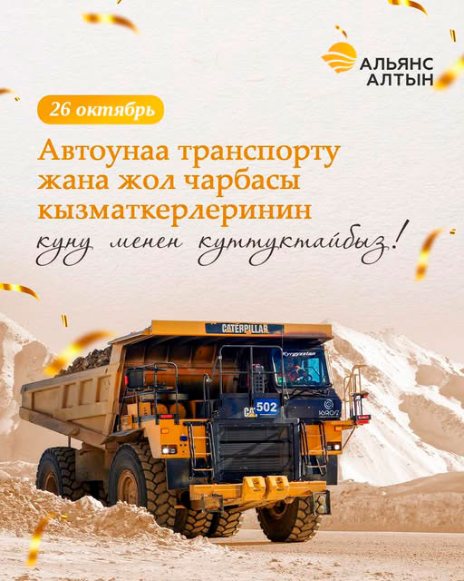 Водители компании «Альянс Алтын» от всей души поздравляют вас с профессиональным праздником. Несмотря на жару и холод, в любую погоду вы ежедневно обеспечиваете перевозку сотрудников и добытой руды, внося важный вклад в бесперебойный процесс добычи золота. Если дорога — это кровеносная система экономики, то именно вы наполняете эти дороги жизнью. Пусть ваш путь всегда будет ровным и открытым. Ваш труд имеет для нас огромное значение. Выражаем искреннюю благодарность за вклад, который вы вносите в развитие компании «Альянс Алтын». Ещё раз примите наши поздравления с праздником!